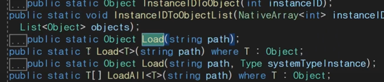 | Resources | 씬에서 게임플레이에 사용할 에셋의 인스턴스를 만드는 대신 스크립트에서 온디맨드 방식으로 에셋을 로드 |
